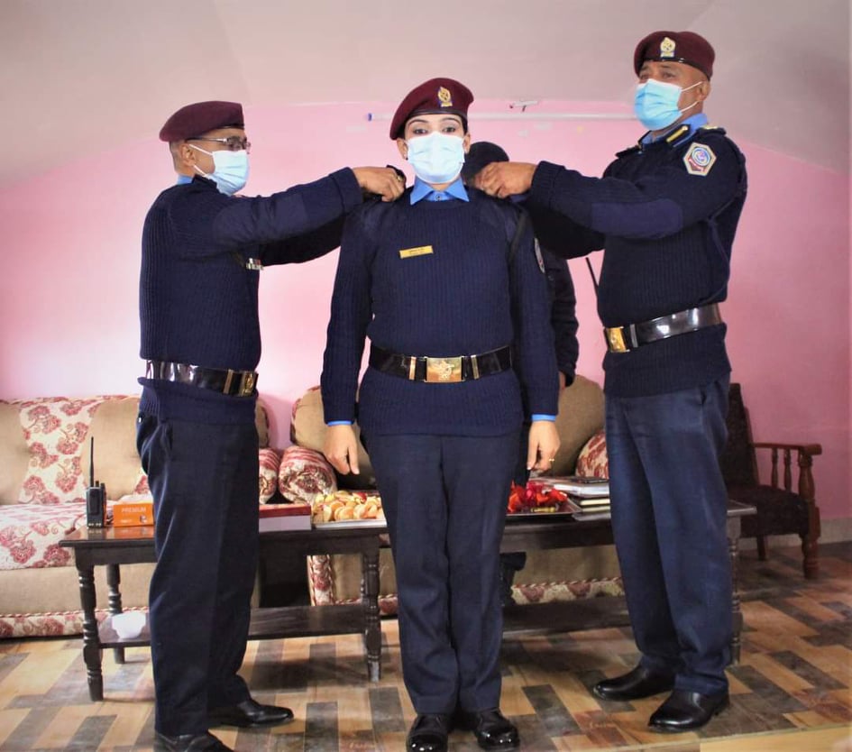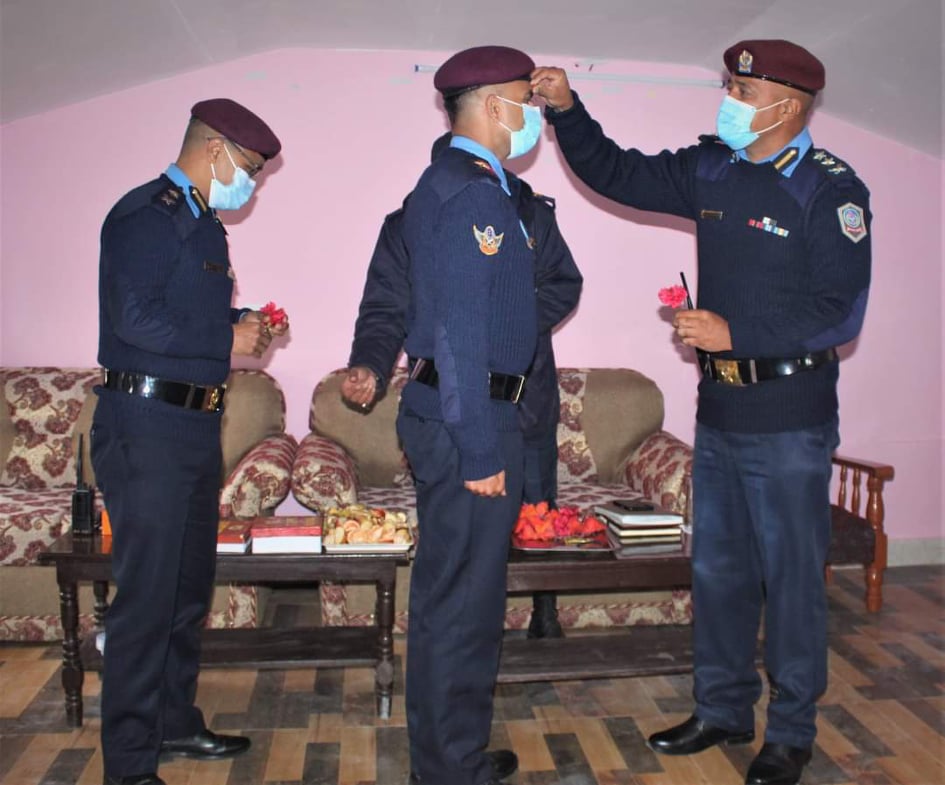 प्रहरी प्रधान कार्यालय मानवस्रोत विकास विभाग कर्मचारी प्रशासन शाखाको ३० गतेको पत्रादेशले प्राविधिक प्रहरी समूह अन्तर्गत संचार प्रहरी प्रहरी हवल्दार बाट प्रहरी सहायक निरीक्षक पदमा पदोन्नति भएका कृष्णकान्त न्यौपाने र २ गतेको पत्रले प्रहरी जवान बाट प्रहरी हवल्दार पदमा दोन्नति भएका शुसिला के।सी।लाई जिल्ला प्रहरी कार्यालय नवलपरासी पूर्वका प्रहरी उपरीक्षक प्रज्वल महर्जन ज्यूबाट दर्ज्यानी चिन्हद्वारा शु-सोभन गर्नु भएको थियो ।