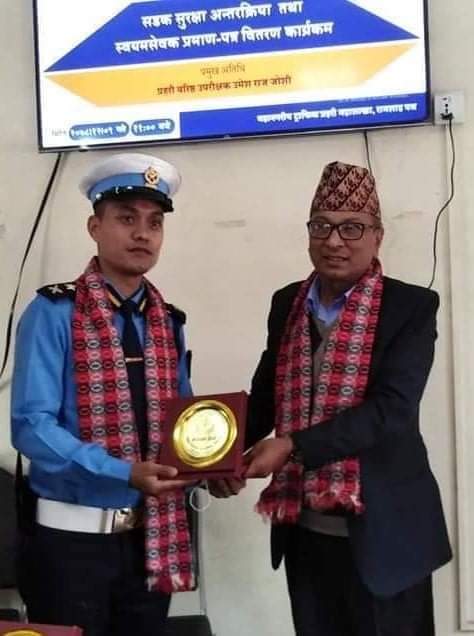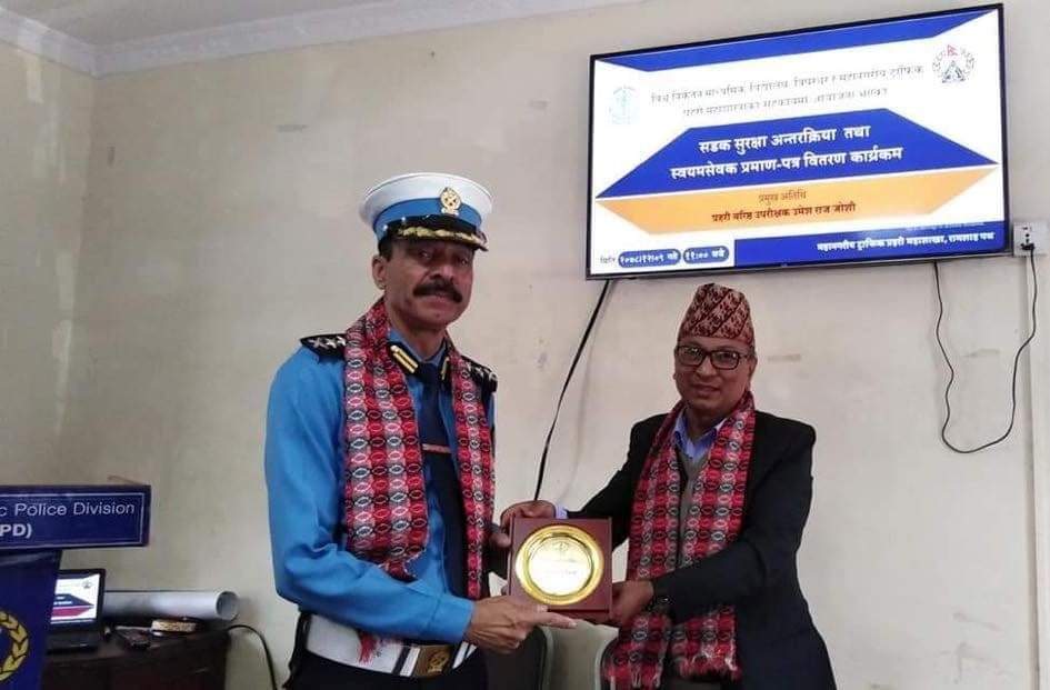ट्राफिक स्वयम् सेवकलाई प्रमाण पत्र हस्तान्तरण तथा सडक सुरक्षा सम्बन्धी अन्तरक्रिया सम्पन्न