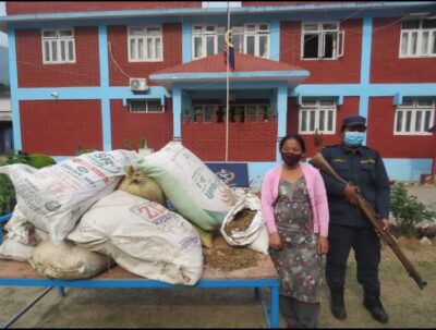 प्युठानको स्वर्गद्वारी नगरपालिका—३ स्थायी घर भएकी देवी केसीलाई फरक फरक तौल भएका १० बोरा जडिबुटीसहित शंकास्पद अवस्थामा फेला पारेपछि पक्राउ गरिएको प्रहरीले जनाएको छ। पक्राउ परेकी केसीलाई जिल्ला प्रहरी कार्यालयमा ल्याई अनुसन्धान गर्दा ती बोरामा कुल २५० किलो ४३७ ग्राम सुनाखारी भएको भेटिएको जिल्ला प्रहरी कार्यालय बागलुङका प्रहरी प्रमुख प्रहरी उपरीक्षक दयानिधि ज्ञवालीले बताए ।