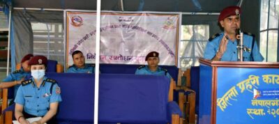 कार्यक्रममा बोल्दै डिआईजी उपाध्यायले एकै चरणमा हुन लागेको स्थानीय तह निर्वाचनलाई शान्तिपूर्वक एवम् निष्पक्ष रुपमा सम्पन्न गराउन जिल्ला प्रहरी कार्यालय बाँकेमा कार्यरत सम्पुर्ण प्रहरी कर्मचारीहरूले आ-आफ्नो तर्फबाट पूर्ण सजगताका साथ भूमिका निर्वाह गर्न निर्देशन दिएका छन् ।