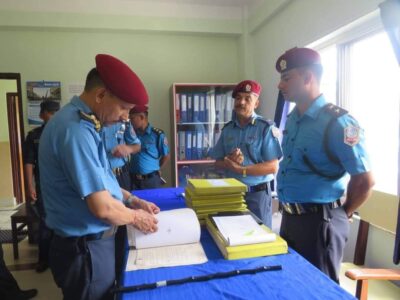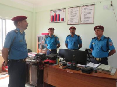गण्डकी प्रदेश प्रहरी कार्यालय पोखराका प्रमुख प्रहरी नायव महानिरीक्षक रामदत्त जोशीले जिल्ला प्रहरी कार्यालय गोरखाको निरीक्षण गर्नु भई जिल्ला प्रहरी कार्यालय गोरखामा रहेका भौतिक पूर्वाधारहरु, प्रहरी कर्मचारी, मेश, ब्यारेक, सम्पुर्ण शाखाहरुको निरीक्षण गर्नुभएको छ ।