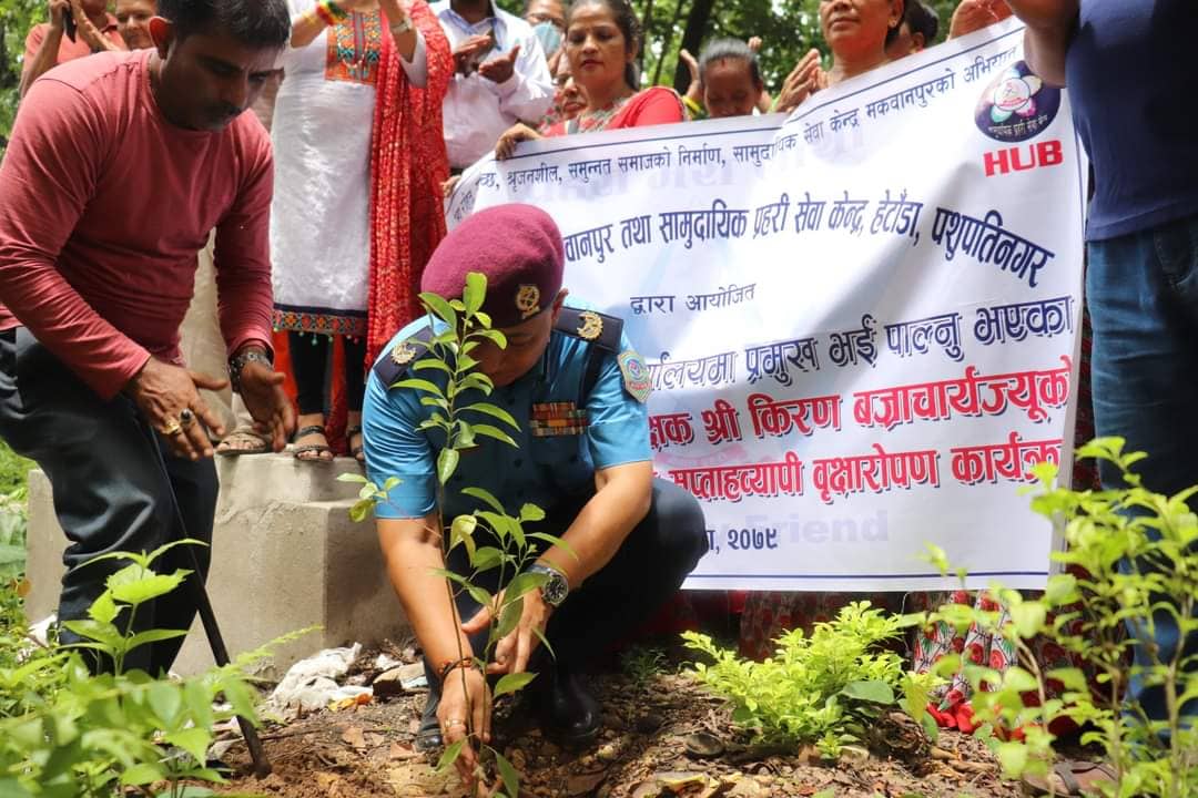८ साउन , काठमाडौँ । सामुदायिक सेवा केन्द्र मकवानपुर तथा सामुदायिक प्रहरी सेवा केन्द्र पशुपतिनगर मकवानपुरद्धारा आयोजित सप्ताहव्यापी वृक्षारोपण कार्यक्रममा सुभारम्भ भएको छ ।
