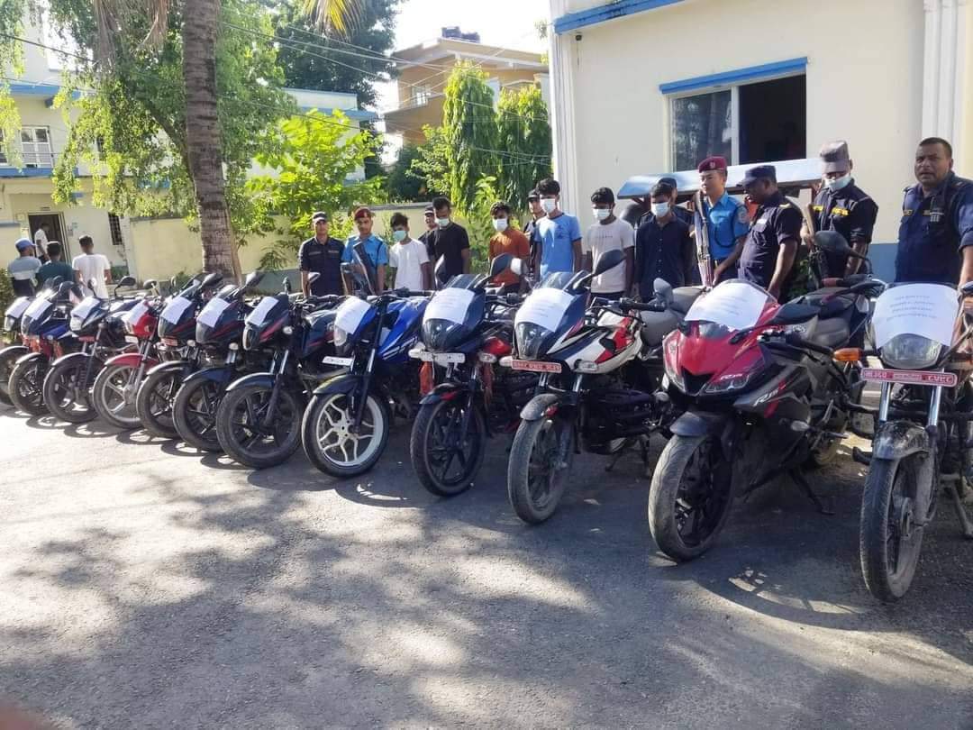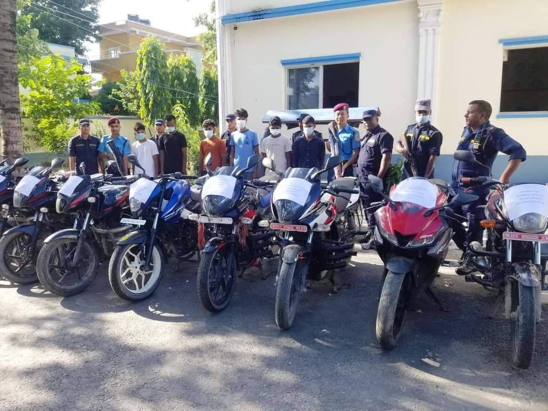 भने पत्रकार समेलनमा प्रहरीले बताएको थिए। साेनारकाे टिममा बिजय पटेल हरिनारायण पटेल बरक सहनि लगायत छव जनलाइ पक्राउ गरि अनुसन्धान गर्दा एक दर्जन माेटरसाइकल प्रहरीले समातेर सर्बजनिक गर्नुभएको थिए।