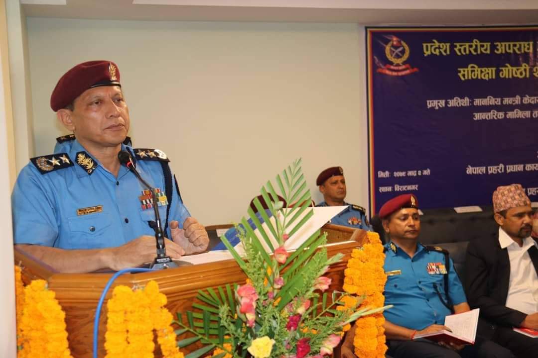 १ नम्बर प्रदेश सरकारका आन्तरिक मामिला तथा कानूनमन्त्री केदार कार्कीको प्रमुख आतिथ्यमा नेपाल प्रहरी प्रधान कार्यालय अपराध अनुसन्धान विभाग र १ नम्बर प्रदेश प्रहरी कार्यालय विराटनगरद्वारा संयुक्त रूपमा आयोजित १ नम्बर प्रदेशस्तरीय अपराध अनुसन्धान समीक्षा गोष्ठी २०७९ विराटनगरमा बिहिबार सम्पन्न भएको छ ।