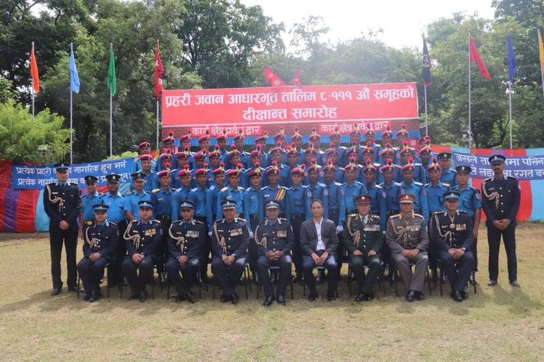 ९ भदौ , काठमाडौँ । लुम्बिनी प्रदेश प्रहरी तालिम केन्द्र, बुटवलमा सञ्चालित प्रहरी जवान आधारभूत तालिम ८-१११ औं समूहको लुम्बिनी प्रदेश प्रहरी प्रमुख प्रहरी नायव महानिरीक्षक नल प्रसाद उपाध्यायको प्रमुख आतिथ्यतामा दीक्षान्त समारोह सम्पन्न भएको छ ।
