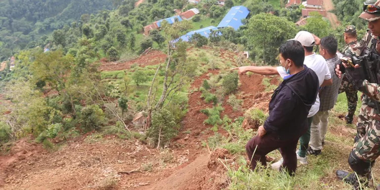 पहिरोको चपेटामा रामतोला बस्ती,११ घरका बासिन्दा एकसाता देखी घर बाहिर