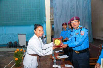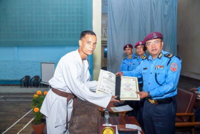 काठमाडौं , राष्ट्रिय प्रहरी प्रशिक्षण प्रतिष्ठान महाराजगञ्जमा सञ्चालित “कराते आधारभूत तालिम ५७ औं” समूहको आज मिति २०७९ कात्तिक २५ गते राष्ट्रिय प्रहरी प्रतिष्ठानका कार्यकारी निर्देशक प्रहरी अतिरिक्त महानिरीक्षक सहकुल बहादुर थापाको प्रमुख आतिथ्यतामा एक कार्यक्रमका बीच समापन भयो ।