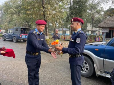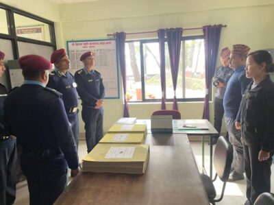 निरीक्षण भ्रमणको क्रममा डिआईजी ज्ञवालीले जिल्ला प्रहरी कार्यालय झापा तथा सम्पुर्ण शाखाहरुको निरीक्षण गर्नु भई कार्यरत प्रहरी अधिकृत तथा जवानहरुलाई निर्देशन दिनु भएको छ ।