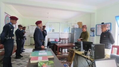 १ नम्बर प्रदेश प्रहरी प्रमुख प्रहरी नायब महानिरीक्षक (डीआईजी) श्यामलाल ज्ञवालीले जिल्ला प्रहरी कार्यालय खोटाङको निरीक्षण भ्रमण गरेका छन्।