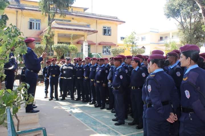बुटवल । लुम्बिनी प्रदेश प्रहरी कार्यालय,दाङ तुल्सीपुरका प्रहरी प्रमुख प्रहरी नायव महानिरीक्षक डिआईजी टेक प्रसाद राईबाट जिल्ला प्रहरी कार्यालय,पाल्पा लगाएत विभिन्न ईलाका प्रहरी प्रहरी चोकी हरुको अवलोकन निरीक्षण तथा प्रहरी कर्मचारीहरुलाई नागरिकको शान्ति सुरक्षामा निरंतरता खत्न निर्देशन दिनुभएको हो ।