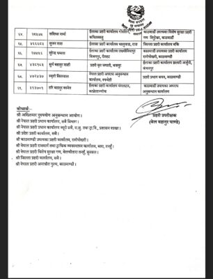 राष्ट्रिय प्रहरी प्रशिक्षण प्रतिष्ठान डेमो गुल्म महाराजगञ्ज, काठमाडौंमा कार्यरत प्रहरी निरीक्षक अनिल थापाको इलाका प्रहरी कार्यालय बेलहिया, रुपन्देहीमा काज सरुवा भएको छ । यसैगरी, इलाका प्रहरी कार्यालय खैरहनी, चितवनमा कार्यरत प्रहरी निरीक्षक अनोज विकको प्रहरी वृत्त थानकोट, काठमाडौंमा सरुवा भएको छ ।