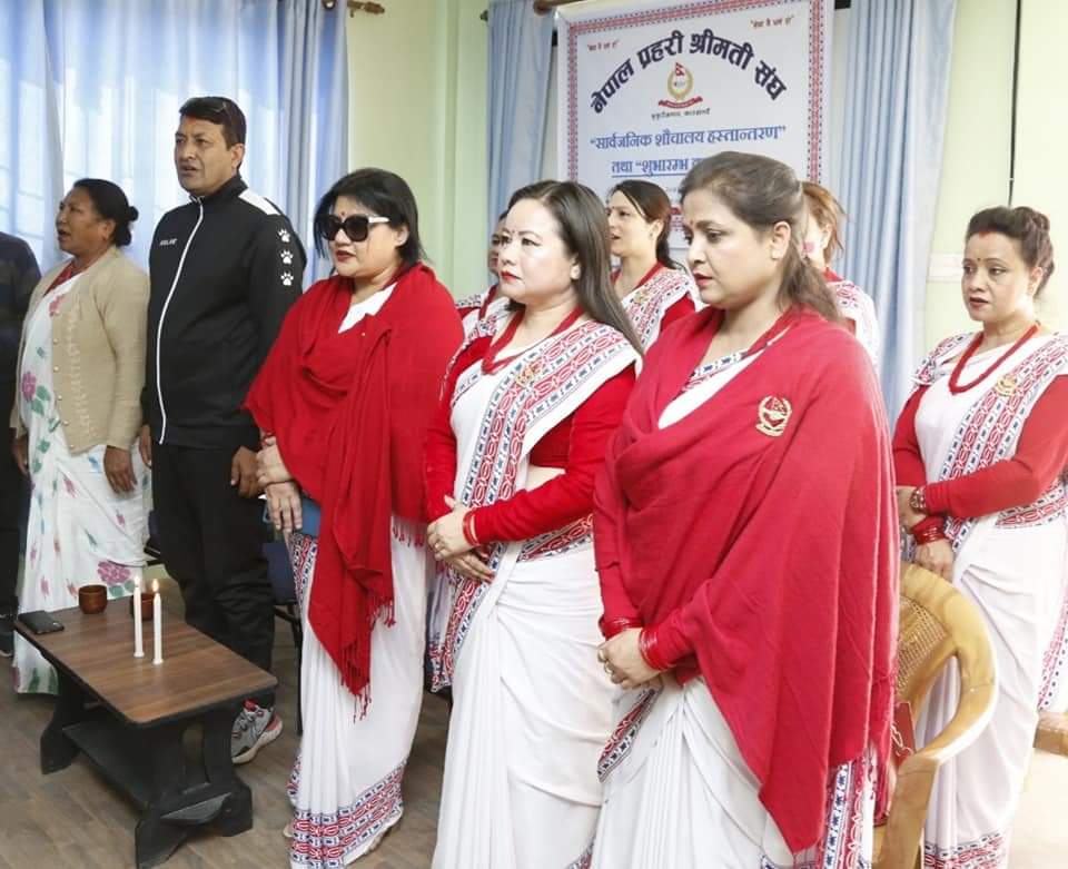 नेपाल प्रहरी श्रीमती संघकी अध्यक्ष श्रीमती कुसुम लता सिंहले बुधबार आयोजित एक कार्यक्रमबीच गोकणेश्वर नगरपालिकाका प्रमुख दिपक कुमार रिसाललाई उक्त शौचालय हस्तान्तरण गरेकी हुन् ।