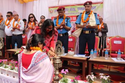 कार्यक्रमका प्रमुख अतिथि नेपाल प्रहरी श्रीमती संघकी अध्यक्ष श्रीमती कुसुम लता सिंहले पानसमा दिप प्रज्वलन गरी बिधिवत रुपमा समुदघान गर्नु भएको हो । साथै वहाँले केन्द्रको परिसरमा नव-निर्मित भगवती मन्दिरको समेत समुदघाटन गर्नु भएको छ ।
