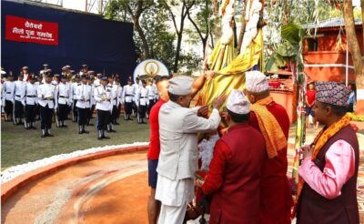 काठमाडौं, प्रहरी महानिरीक्षक बसन्त बहादुर कुँवरले चैते दशैंका अवसरमा बुधबार नेपाल प्रहरी सशस्त्र प्रहरी गण नम्बर १ नक्सालस्थित मौलोमा पूजाअर्चना तथा सङ्कल्प पूजा गर्नुभयो ।
