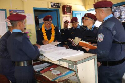 कोशी प्रदेश प्रहरी प्रमुख प्रहरी नायव महानिरीक्षक चन्द्र कुवेर खापुङले आज जिल्ला प्रहरी कार्यालय पाँचथरको निरीक्षण भ्रमणको क्रममा कार्यलय भवन, सम्पुर्ण शाखाहरु तथा हिरासत कक्षको स्थलगत निरीक्षण गर्नु भएको छ ।