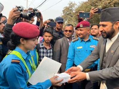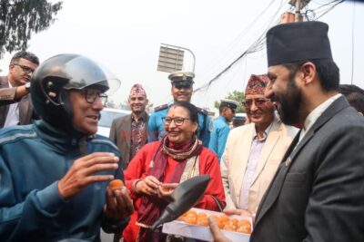 गृहमन्त्री लामिछानेले प्रहरीको मनोबल र सुधारको काम अझ अघि बढाउनका लागि नयाँ वर्षको दिनमा खुसीयाली साटासाट गर्न आफू सडकमा आएको बताए ।