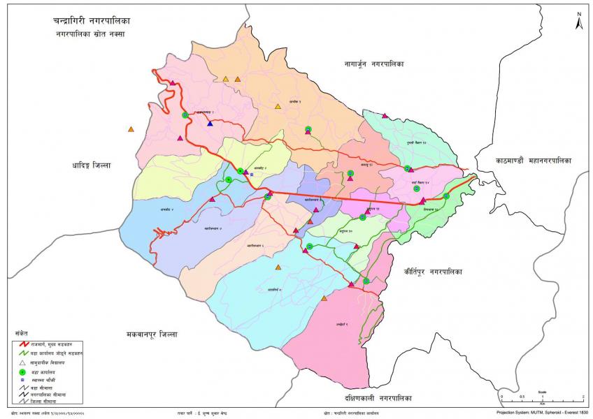 नेपालको संविधान अनुसार राज्य पुनःसंरचना आयोगको पुनःसंरचना पछि नेपाल सरकार, मन्त्री परिषद्को मिति २०७३ साल फागुन २२ गतेको स्थानीय तह पुनःसंरचना सम्बन्धी निर्णय २०७३ साल फागुन २७ गते राजपत्रमा प्रकाशित भएपछि स्थानीय तहको व्यवस्था लागू भई चन्द्रागिरि नगरपालिकामा जम्मा १५ वडा कायम भएको हो ।