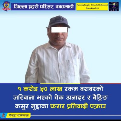 काठमाडौँ महानगरपालिका ३० बस्ने ४७ वर्षका अग्रवाल अदालतबाट दोषि ठहर भएपछि फरार रहँदै आएका थिए।