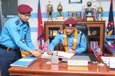 काठमाडौँ : प्रहरी प्रधान कार्यालय, मानवश्रोत एवम् प्रशासन विभाग, कर्मचारी प्रशासन शाखाको पत्रले गण्डकी प्रदेश प्रहरी कार्यालय पोखरा सरुवा भई आउनु भएका प्रहरी नायव महानिरीक्षक दिनेश कुमार आचार्यले गण्डकी प्रदेश प्रहरी प्रमुखको पदभार ग्रहण गर्नुभएको छ ।